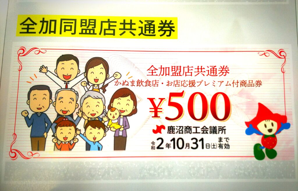 「かぬま飲食店・お店応援プレミアム付商品券」の取扱店になっております。
