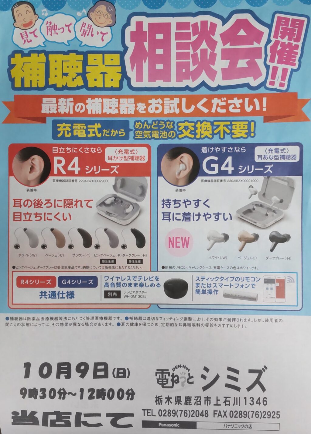 本日、当店にて補聴器相談会を