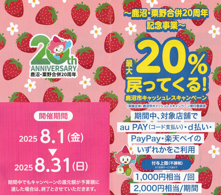 【鹿沼市キャッシュレスキャンペーン実施中🎊】