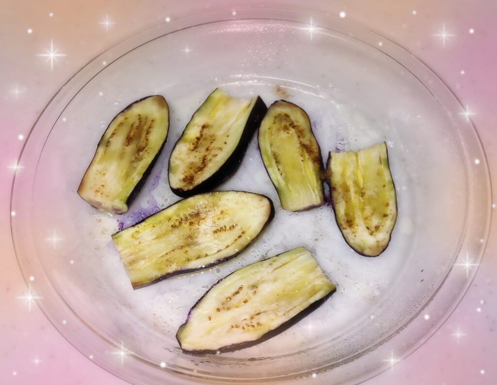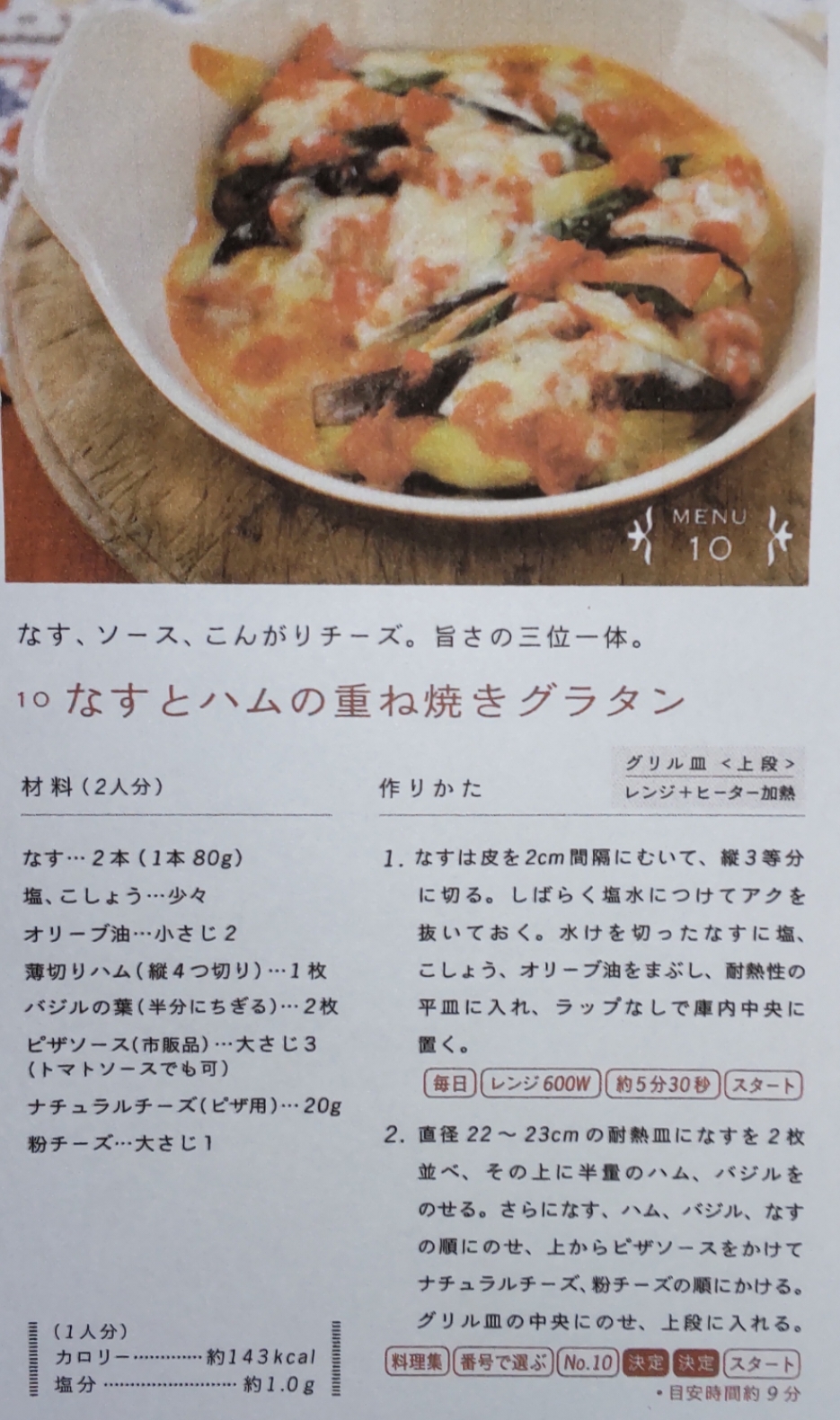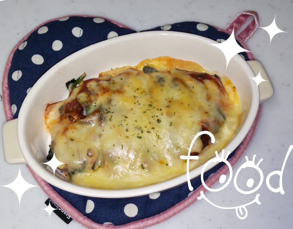 なすとハムの重ね焼きグラタンを