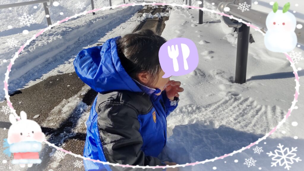 雪をつまんでパクリ・・・💦