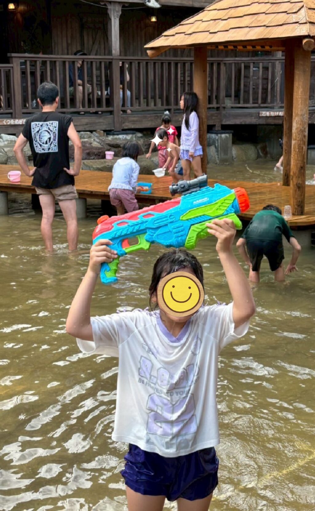 3人で水鉄砲で攻撃しあって全身ずぶ濡れ🤣