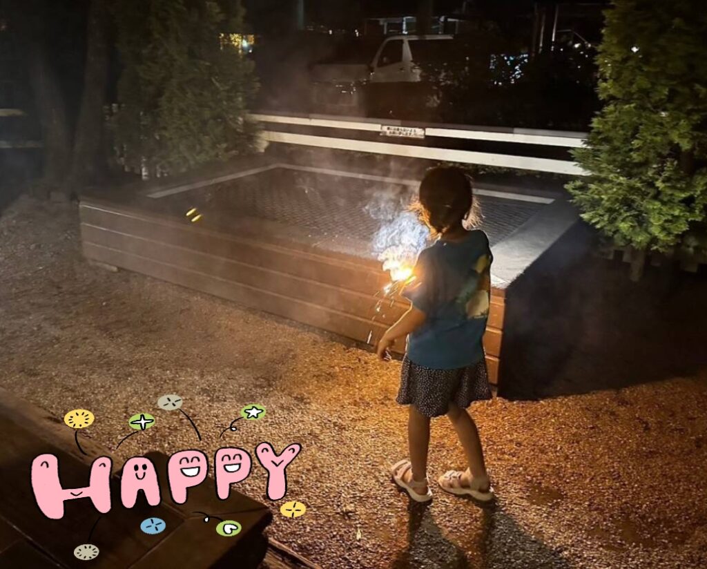 一日目の最後はキャビンで手持ち花火を