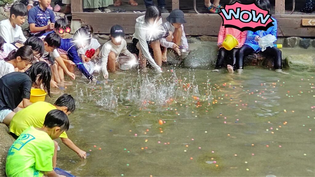 イベント終了後はこのまま池で水鉄砲遊び🎶