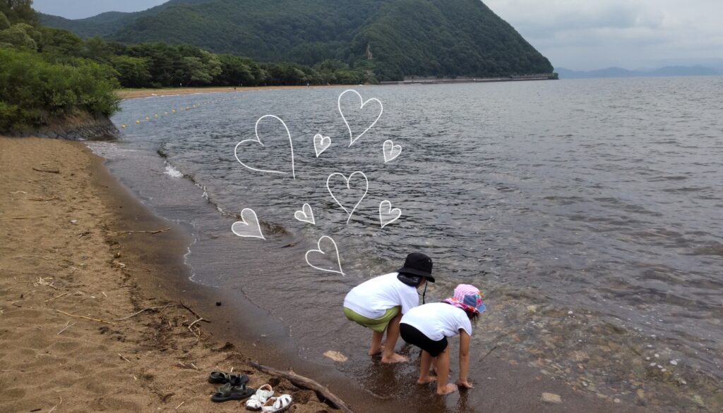 次男と長女は湖で水遊びです😁