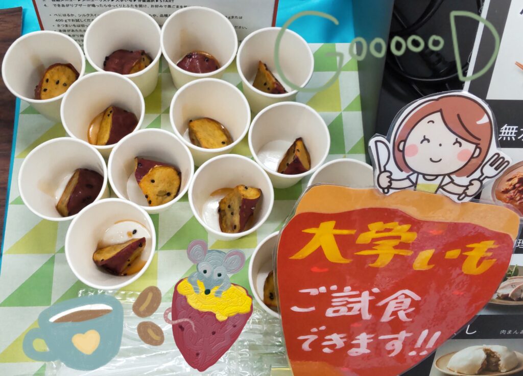 試飲用のコーヒーと大学芋の甘さが、